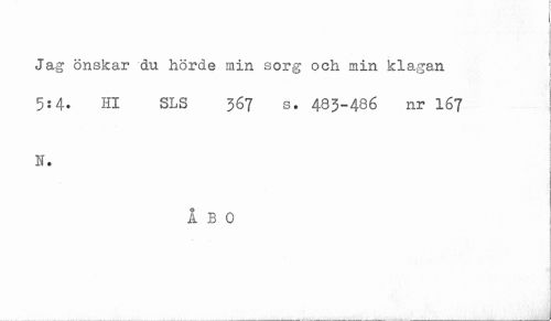 //// ( //// ! //// Jag önskar du hörde min sorg och min klagan //// 5:4. Hl SLS 367 S. 483-486 nr I67 //// N. //// ÅBO ////