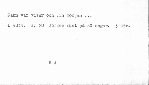//// Jahn var viter och Jim morjan ... //// B $8:3, s. 28 Jorden runt p& 80 dagar. 3 str. //// R Å ////