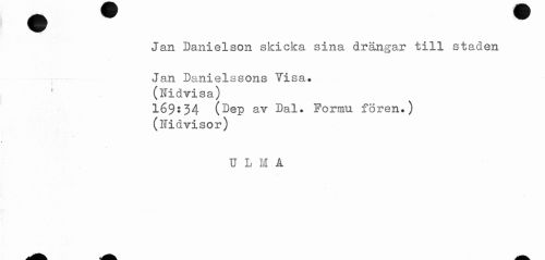 //// Jan Danielssons Visa. //// (Nidvisa) //// 169^34 (Dep av Dal. Formu fören.) //// (Nidvisor) //// U L M A ////