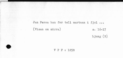 //// Jan Persa han for tell martnan i fjol ... //// ! (Visan om märra) s. 16-17 //// Ljung (R) //// V F F : 1858 ////