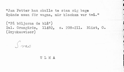 //// ! //// ("P& böljorna de blå") ! //// Dal. Grangärde, 11482, s. 208-211. Blixt, 0. //// (Dryckesvisor) //// f ! //// { //// U L M Å j //// i- //// ! //// t ////
