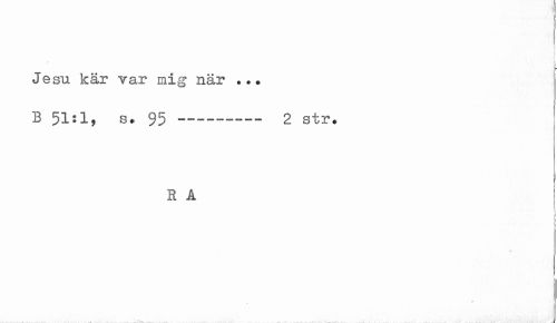 //// t //// f* //// Jesu kär var mig när ... //// B 51:1, s. 95--------- 2 str. //// R A //// i ////