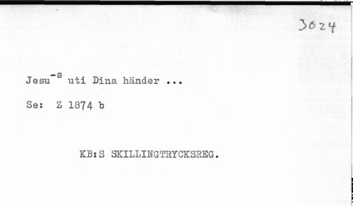 //// ** s //// Jesu uti Dina händer ... //// Se: Z 1874 b //// KB:S SKILLINGTRYCKSREG. ////