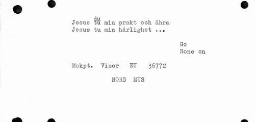 //// Jesus ^u min prakt och ähra //// Jesus tu min härlighet ... //// Go //// Rone sn //// Mskpt. Visor EU 36772 //// NORD MUS ////