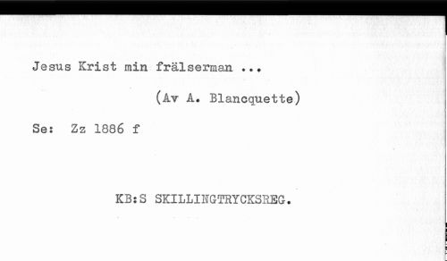 //// Jesus Krist min frälserman ... //// (Av A. Blancquette) //// Se: Zz 1386 f //// KB:S SKILLINGTRYCKSREG. ////