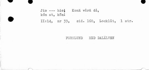 //// Jio --- hio} Konä v&rå då, //// kom at, komi //// ' ^^ 11:14, nr 39y sid. 160, Locklåt, 1 str. //// FORSLUND MED DALÄLVEN //// t . . //// \ . _________________r' ////