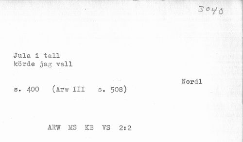 //// -^Vö //// Jula i tall //// körde jag vall //// Nordl //// s. 400 (Arw III s. 508) //// ARW MS KB VS 2:2 //// - ////