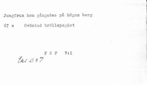 //// Jungfrun hon gångades på högan berg //// t //// 67 e Oväntad bröllopsgäst //// F S F V:1 //// ! ////