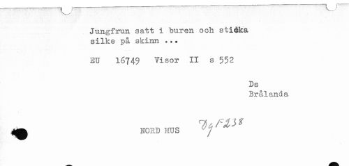 //// Jungfrun satt i buren och stidka //// silke på skinn ... //// EU 16749 Visor II s 552 //// Ds //// Br åland a //// ^ NORD MUS ////
