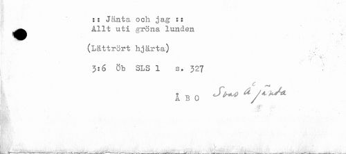 //// :: Jänta och jag :: //// ^^ Allt uti ^röna lunden //// * '. //// (Lättrört hjärta) //// .. * * ' * - . //// - r - 'Q. .-. //// .- * //// 3:6 8b SLS 1 s. 327 //// Å B 0 ^ //// ; iM^ , ' ' - //// 1 * # ' ' - . * - ' ' ' \ ' -* ' - ^ //// ^ . - - //// ^ r^------^------------^-. .--^-. . . . --- ... - ... ..................,..... -________ ////