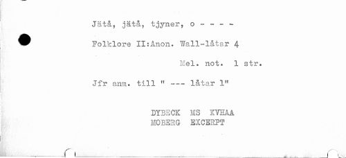 //// Jätå, jätå, tjyner, o - - - - //// ^^ Folklore II:Ånon* Wall-låtar 4 //// Hel. not. 1 str. //// Jfr anm. till " --- låtar 1" //// ! //// ! //// DYBECK HS KVBAA //// MOBERG EXCERPT //// - //// ^ f ^_____ __________ _______ r, ////