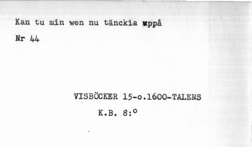 //// Kan tu min wen nu tänckia wppå //// Nr 44 //// VISBÖCKER 15-o.1600-TALENS //// K.B. 8:° ////