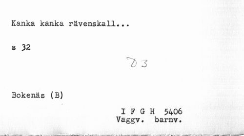 //// Kanka kanka rävenskall... //// s 32 //// T j //// Bokenäs (B) //// I F G H 5406 //// Vaggv. barnv. ////