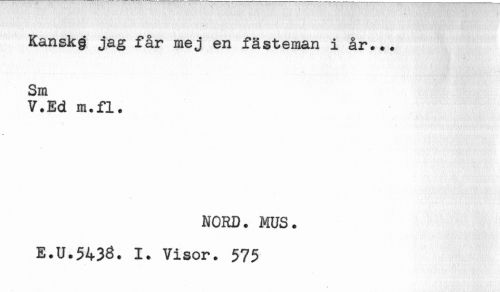 //// Kansk§ jag får mej en fästeman i år... //// Sm //// V.Ed m.fl. //// NORD. MUS. //// E.U.5433. 1. Visor. 575 ////