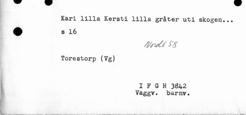 //// Kari lilla Kersti lilla gråter uti skogen... //// i //// Torestorp (Vg) //// M.. //// I I F G H 3^42 //// t Vaggv. barnv. ////