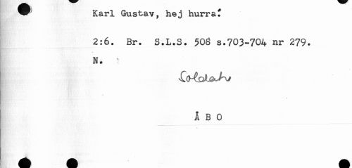 //// * Karl Gustav, hej hurrat //// ' //// 2:6. Br. S.L.S. 508 s.703-704 nr 279. //// . //// N. ' //// ÅBO ////