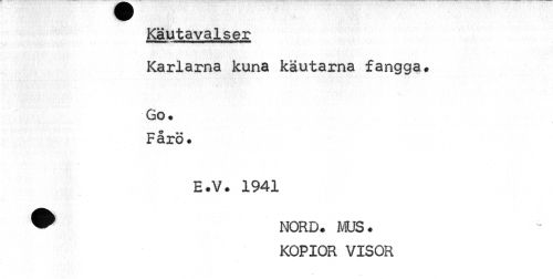 //// Käutavalser //// Karlarna kuna käutarna fangga. //// Go. //// Fårö. //// E.V. 1941 //// ^ NORD. ms. //// KOPIOR VISOR ////