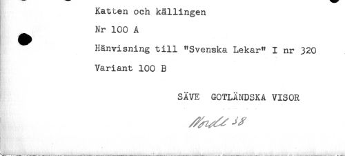 //// Katten och källingen //// ^ Nr 100 A //// Hänvisning till "Svenska Lekar" I nr 320 //// * //// . //// Variant 100 B //// I' //// SÄVE GOTLÄNDSKA VISOR ////