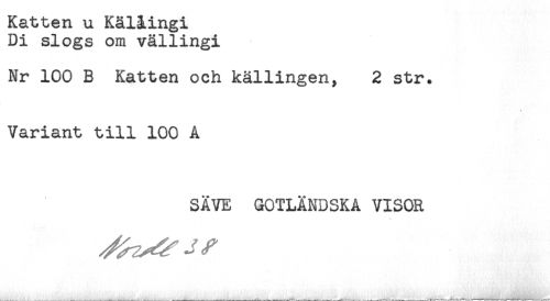 //// Katten u Kälåingi //// Di slogs om vällingi //// Nr 100 B Katten och källingen, 2 str. //// Variant till 100 A //// SÄVE GOTLÄNDSKA VISOR ////