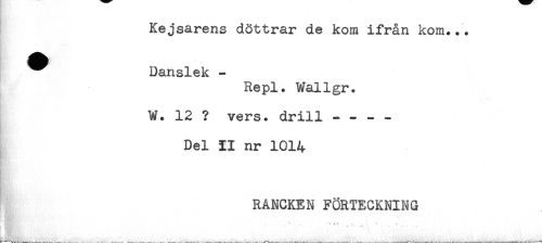 //// Kejsarens döttrar de kom ifrån kom... //// Danslek - //// Repl. Wallgr. //// W. 12 ? vers. drill ---- //// Del II nr 1014 //// i - //// RANCKEN FÖRTECKNING ////
