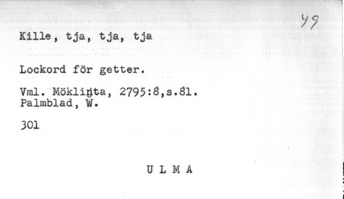 //// Kille, tja, tja, tja //// ..... //// ) //// Lockord för getter. //// .. - . * - ' t! * //// Vml. MökliRta, 2795:3,s.gl. //// Palmblad, W. //// 301 //// ' ! //// U L M A ! ////