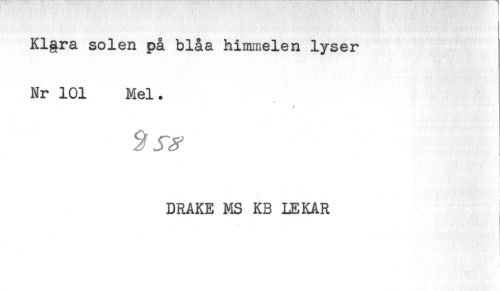 //// Kl§ra solen på blåa himmelen lyser //// Nr 101 Mel. //// * //// < //// . //// i //// t //// - //// DRAKE MS KB LEKAR ////
