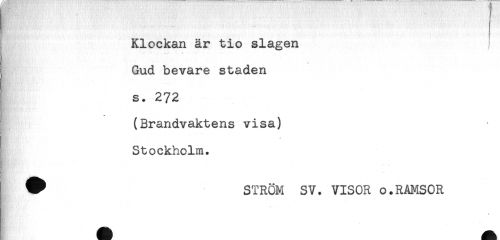 //// Klockan är tio slagen //// # //// Gud bevare staden //// r //// s. 272 //// (Brandvaktens visa) //// t!* //// Stockholm. //// ^ STRÖM SV. VISOR o.RAMSOR //// * ////
