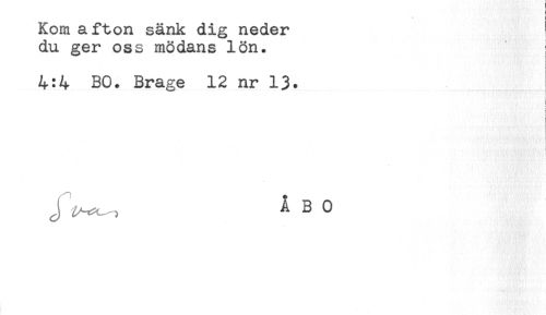 //// Kom afton sänk dig neder //// du ger oss mödans lön. j //// ! //// i //// 4:4 BO. Brage 12 nr 13. //// i //// ! //// < //// ! //// ] //// A B 0 ////