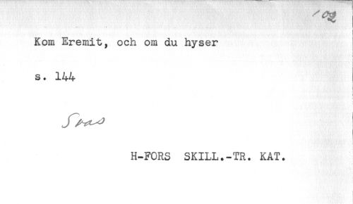 //// . //// I //// y //// < //// Kom Eremit, och om du hyser //// * f //// { //// s. 144 //// - //// i //// < //// < //// i //// < //// : //// H-FORS SKILL.-TR. KAT. ////