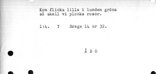 //// Kom flicka lilla i lunden gröna //// så skall vi plocka rosor. //// 1:4. ? Brage 14 nr 32. //// t ^ ÅBO //// n ////