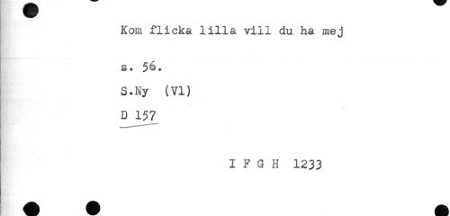//// Kom flicka lilla vill du ha mej //// - //// By.. - //// . //// - //// s. 56. //// S.Ny (VI) //// D 157 //// I F G H 1233 ////