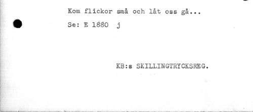 //// Kom flickor små och låt oss gå... //// # Se: E 1880 j //// - //// KB:s SKILLINGTRYCKSREG. //// i //// - ////
