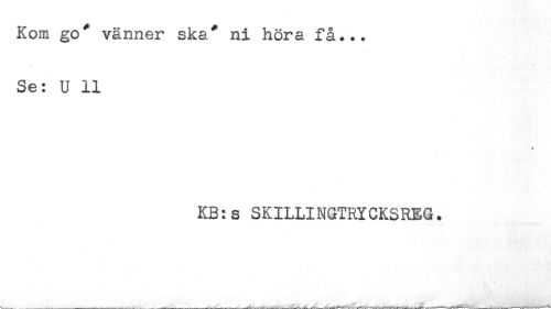 //// Kom go* vänner ske/ ni höra få... //// Se: U 11 //// 4 //// KB:s SKILLINGTRYCKSREG. ////