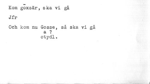 //// Kom goxsär, ska vi gå //// Jfr //// Och kom nu Gosse, så ska vi gå //// a ? //// otydl. //// , ....... ................................................. :',..',.. ........^ ////