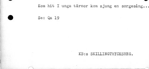 //// Kom hit I unga tärnor kom sjung en sorgesång.. //// i //// ^ Se: Qa 19 //// t //// i //// * //// I //// KB:s SKILLINGTRYCKSREG. //// < ____________________________________-^ ////