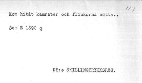 //// Kom hitåt kamrater och flickorna nätta.. //// Se: E 1890 q //// KB:s SKILLINGTRYCKSREG. ////
