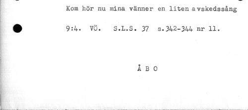 //// Kom hör nu mina vänner en liten avskedssang //// c //// # 9:4. vö. S.L.S. 37 s.342-344 nr 11. //// - //// ÅBO //// -t ////