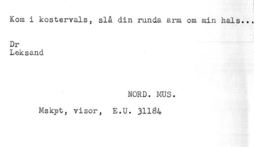 //// Kom i kostervals, slå din runda arm om min hals... //// Dr //// Leksand //// NORD. MUS. //// Mskpt, visor, E.U. 31134 ////