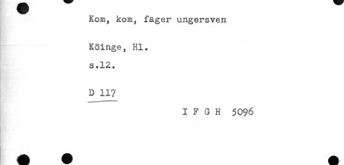 //// Kom, kom, fager ungersven //// Köinge, Hl. //// s.12. //// D 117 //// I F G H 5096 ////