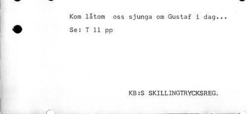 //// Kom låtom oss sjunga om Gustaf i dag... //// ^^ Se: T 11 pp //// ) //// . //// i //// KB:S SKILLINGTRYCKSREG. ////