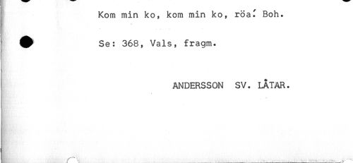 //// Kom min ko, kom min ko, röaf Boh. //// ! ' //// ' ^ Se: 368, Vals, fragm. //// ANDERSSON SV. LÅTAR. //// . //// L ^ - ________ ______ ______________________ ////
