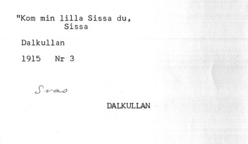 //// "Kom min lilla Sissa du, //// Sissa //// Dalkullan //// 1915 Nr 3 //// DALKULLAN ////