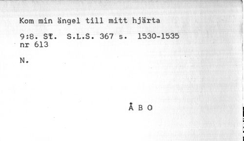 //// Kom min ängel till mitt hjärta //// 9:8. SI. S.L.S. 367 s. 1530-1535 //// nr 613 //// N. //// ^ //// t < //// < //// ÅBO i //// ! //// < //// H //// a ////