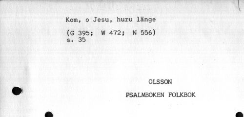 //// Kom, o Jesu, huru länge //// (G 395; W 472; N 556) //// s. 35 //// OLSSON //// ^ PSALMBOKEN FOLKBOK //// * , ... //// * ////