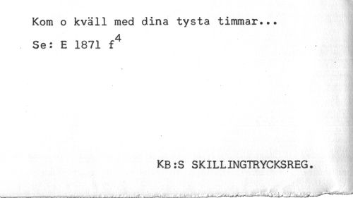 //// Kom o kväll med dina tysta timmar... //// Se: E 1871 f^ //// * //// KB:S SKILLINGTRYCKSREG. ////