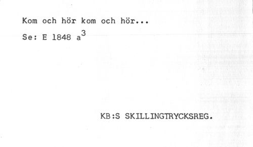 //// Kom och hör kom och hör... //// Se: E 1848 a^ //// KB:S SKILLINGTRYCKSREG. ////