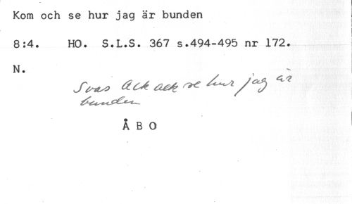//// Kom och se hur jag är bunden //// 8:4. HO. S.L.S. 367 s.494-495 nr 172. //// ] //// N. //// ÅBO ////