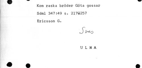 //// Kom raska bröder Göta gossar //// Sdml 347:49 s. 217U257 //// Ericsson G. //// t'* * //// U L M A ////