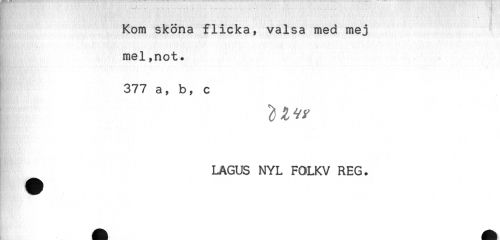 //// Kom sköna flicka, valsa med mej //// mel,not. //// 377 a, b, c //// ^ LAGUS NYL FOLKV REG. ////