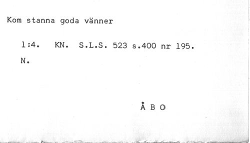 //// Kom stanna goda vänner //// i //// t //// 1:4. KN. S.L.S. 523 s.400 nr 195. //// N. //// ÅBO ////